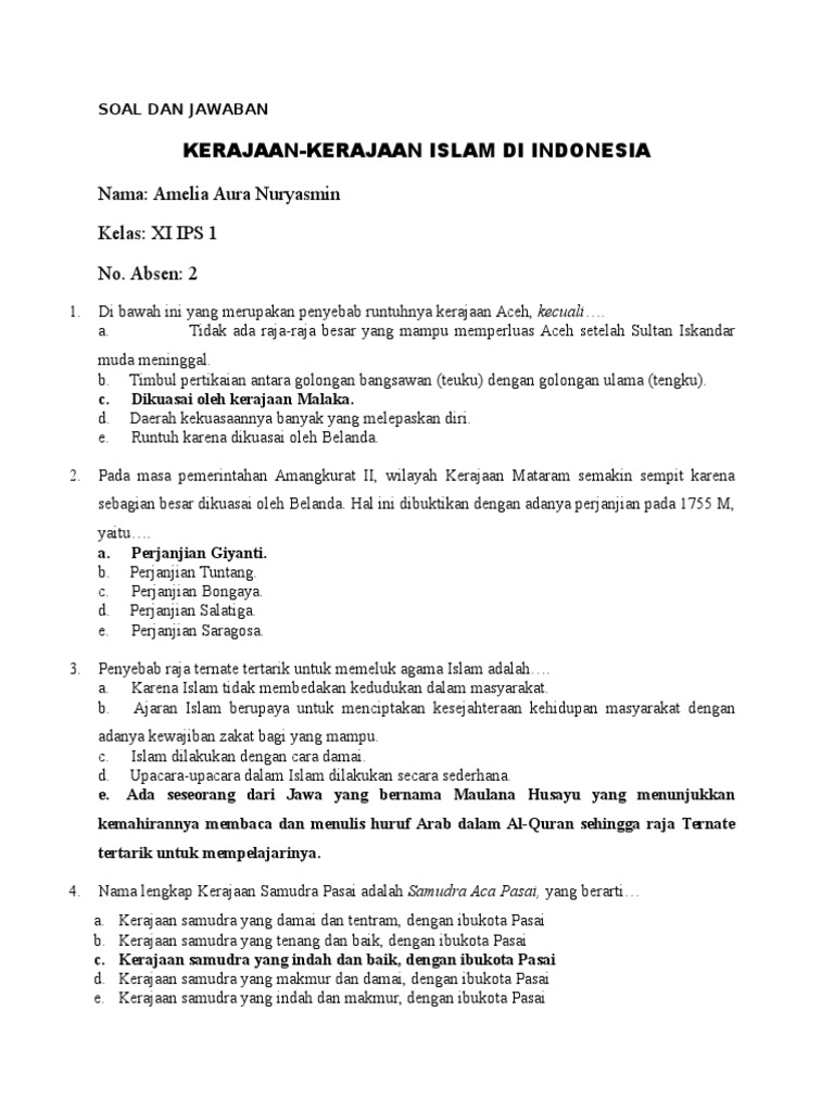 Soal dan jawaban perkembangan islam di indonesia. Bukti tertulis mengenai perkembangan islam di indonesia dapat dilihat dari batu nisan fatimah binti maimun di leran. Situs ini berada dibawah pengawasan langsung syekh muhamad bin saleh al munajid hafizahullahadmin menerima berbagai pertanyaan dari para penanya baik muslim atau non muslim baik.